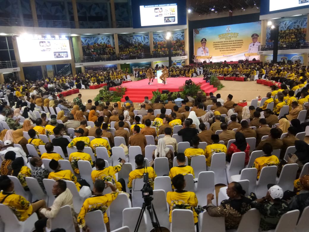 Wali Kota Balikpapan, Rahmad Mas’ud didampingi Wakil Walikota Bagus Susetyo memaparkannya dihadapan ribuan Ketua RT, LPM dan LKM di Balikpapan Sport and Convention Center (BSCC) Dome.