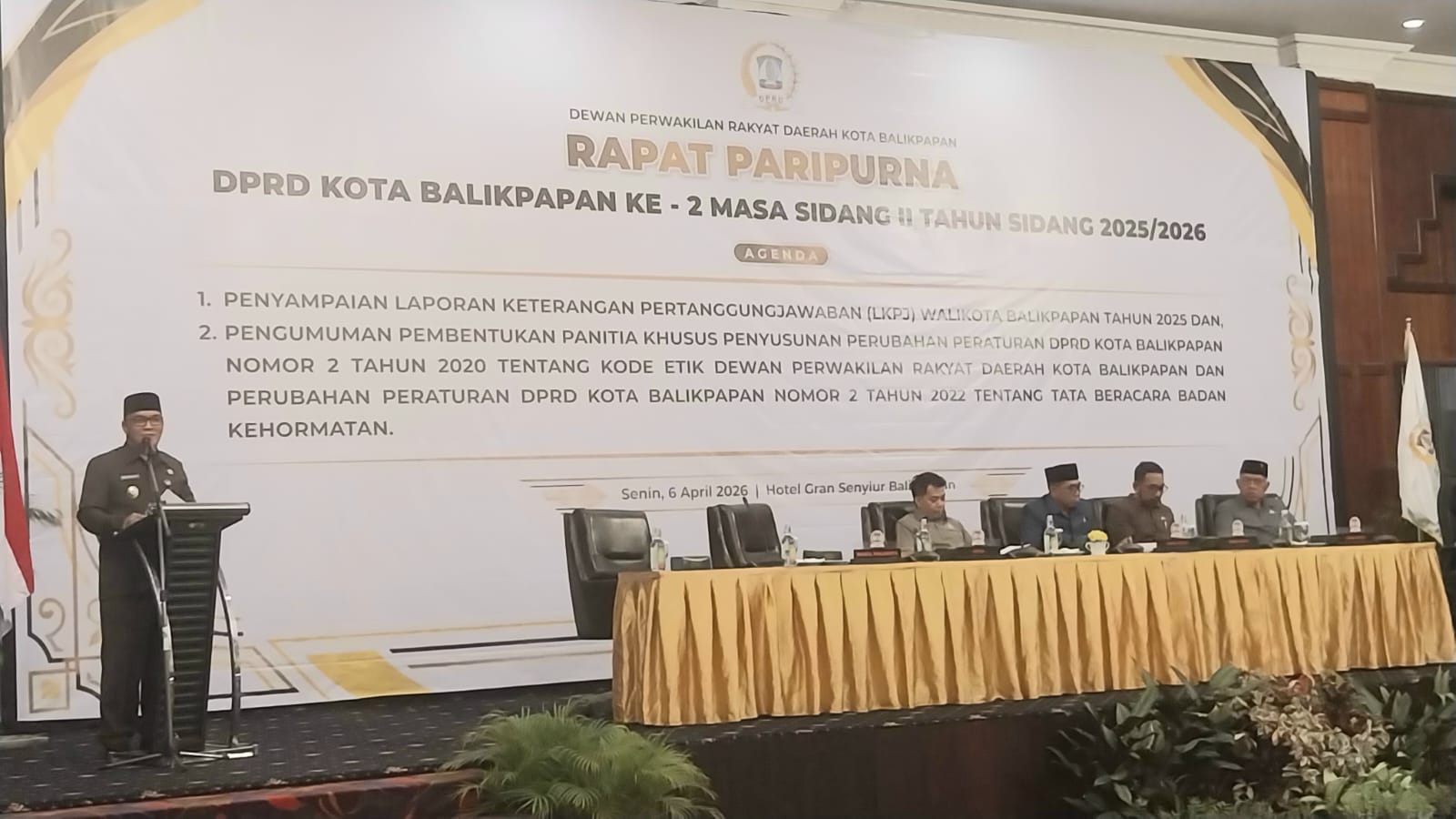Kacamatanegeri.com, BALIKPAPAN– Pemkot Balikpapan melalui Wakil Walikota, Bagus Susetyo memaparkan capaian kinerja keuangan Tahun Anggaran 2025 dalam Laporan Keterangan Pertanggungjawaban (LKPj) pada Rapat Paripurna DPRD Balikpapan yang berlangsung sukses di Hotel Gran Senyiur, Senin (6/4/2026).
